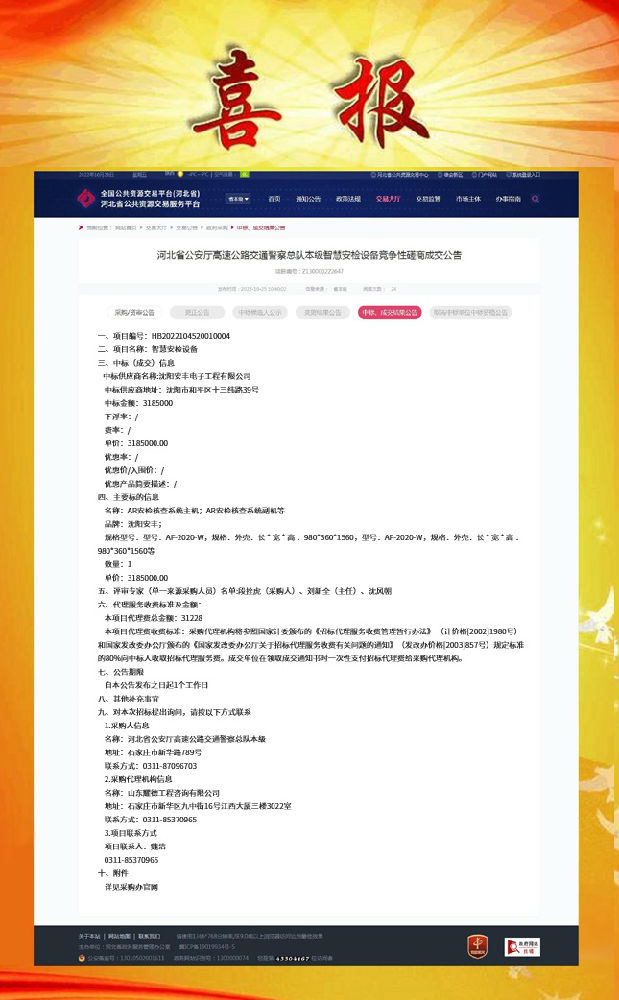 賀:河北省公安廳高速公路交通警察總隊(duì)智慧安檢設(shè)備-智慧安檢設(shè)備中標(biāo)!